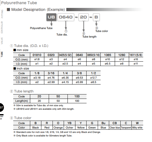 Có đặc điểm về độ linh hoạt tuyệt vời, thích hợp nhất cho hệ thống ống dẫn nhỏ gọn. Ống đa dạng về màu sắc có tới 10 màu khác nhau. (Ống loại Inch chỉ được chọn từ màu đen hoặc màu da cam như loại tiêu chuẩn. Nhiều loại màu sắc hơn nữa có sẵn theo yêu cầu)