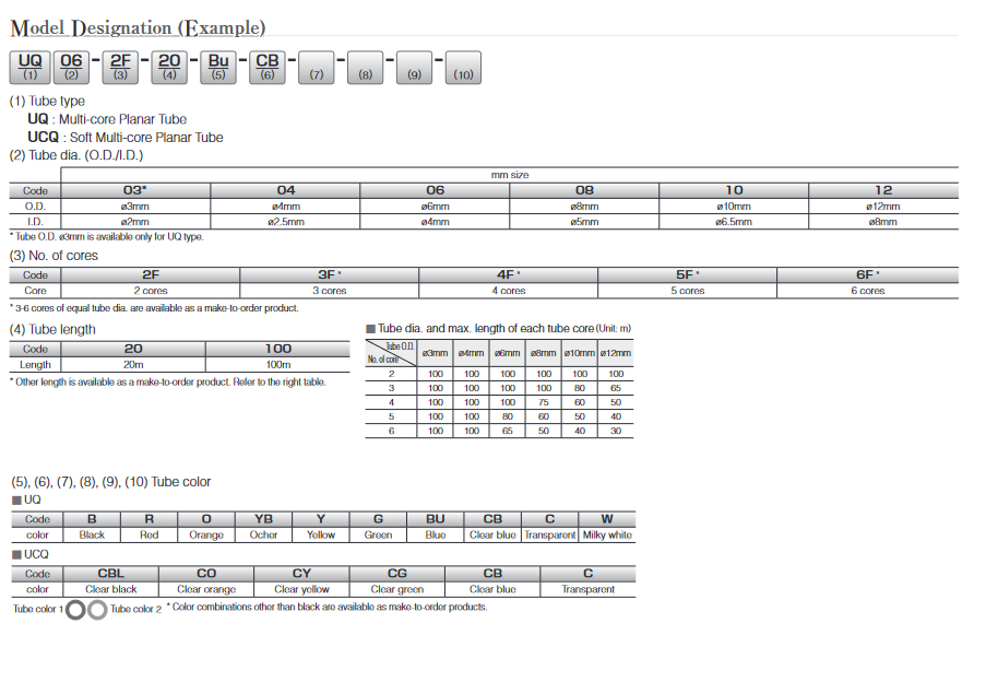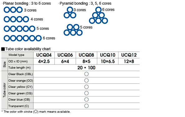 Đối với ống 2 lõi đen trong, vạch phân biệt được in trên một ống để ngăn ngừa lỗi đường ống. Tương tự như ống UQ, ống UCQ có 2 loại ống nằm ngang và ống xếp lên nhau hình kim tự tháp. Độ đa dạng từ 3 tới 6 lõi ống với 10 màu sắc để lựa chọn.